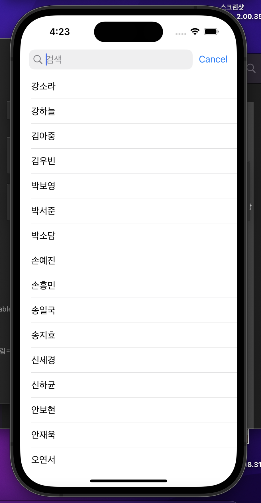 일단, 내가 만든 프로젝트는 배우들의 이름을 배열에 저장하고 그 배열을 테이블뷰로 출력해서 검색할 수 있게 해주는 기능을 담았다.