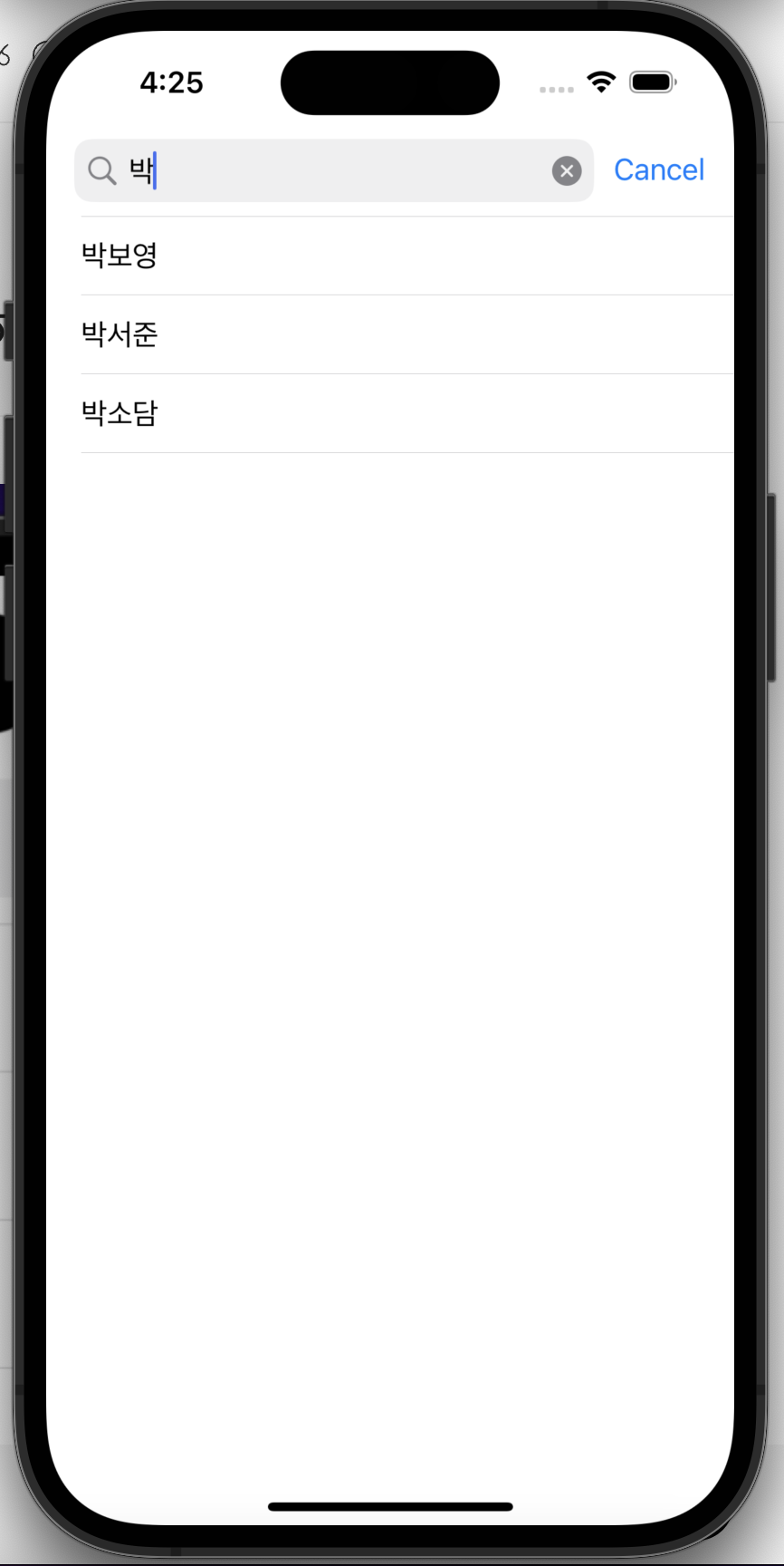 //contains 메서드: 조예진이면 조, 조예, 조예진 검색해야함, hasPrefix: 조예진이면 예, 진, 예진, 조예 등 검색어가 포함된 결과는 다 나옴